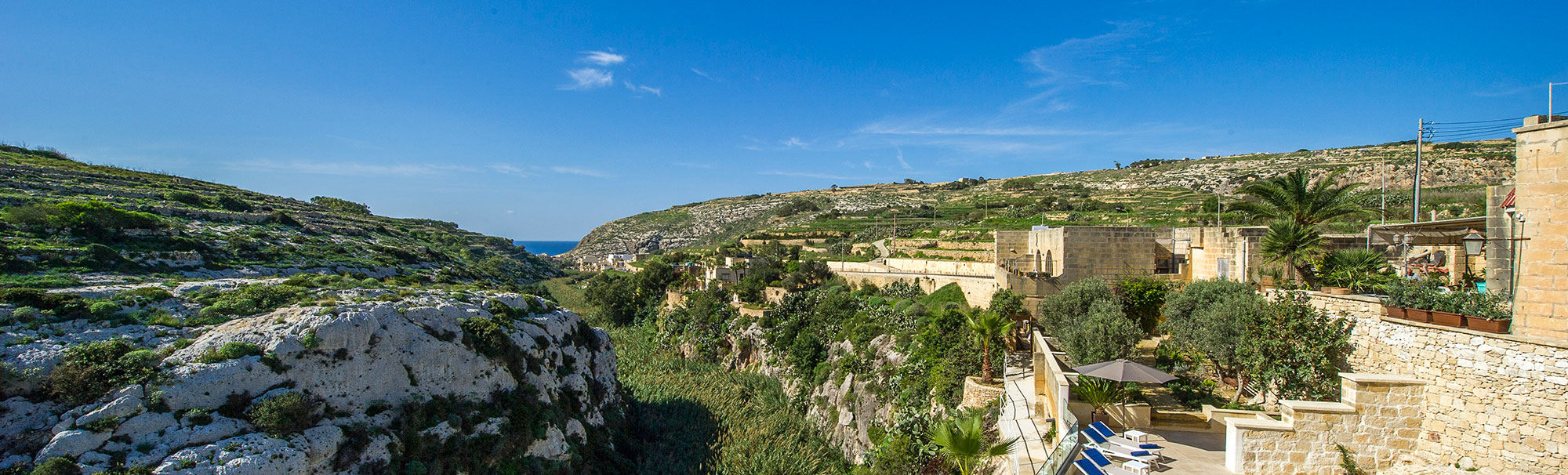By car: From central Victoria, follow the signs that indicate Xlendi. You’ll drive down through the village of Fontana, past the old washhouse along the road leading to Xlendi. Once you have reached the height of the road, it’s difficult to miss us on the left-hand side, next to the Bus Stop.